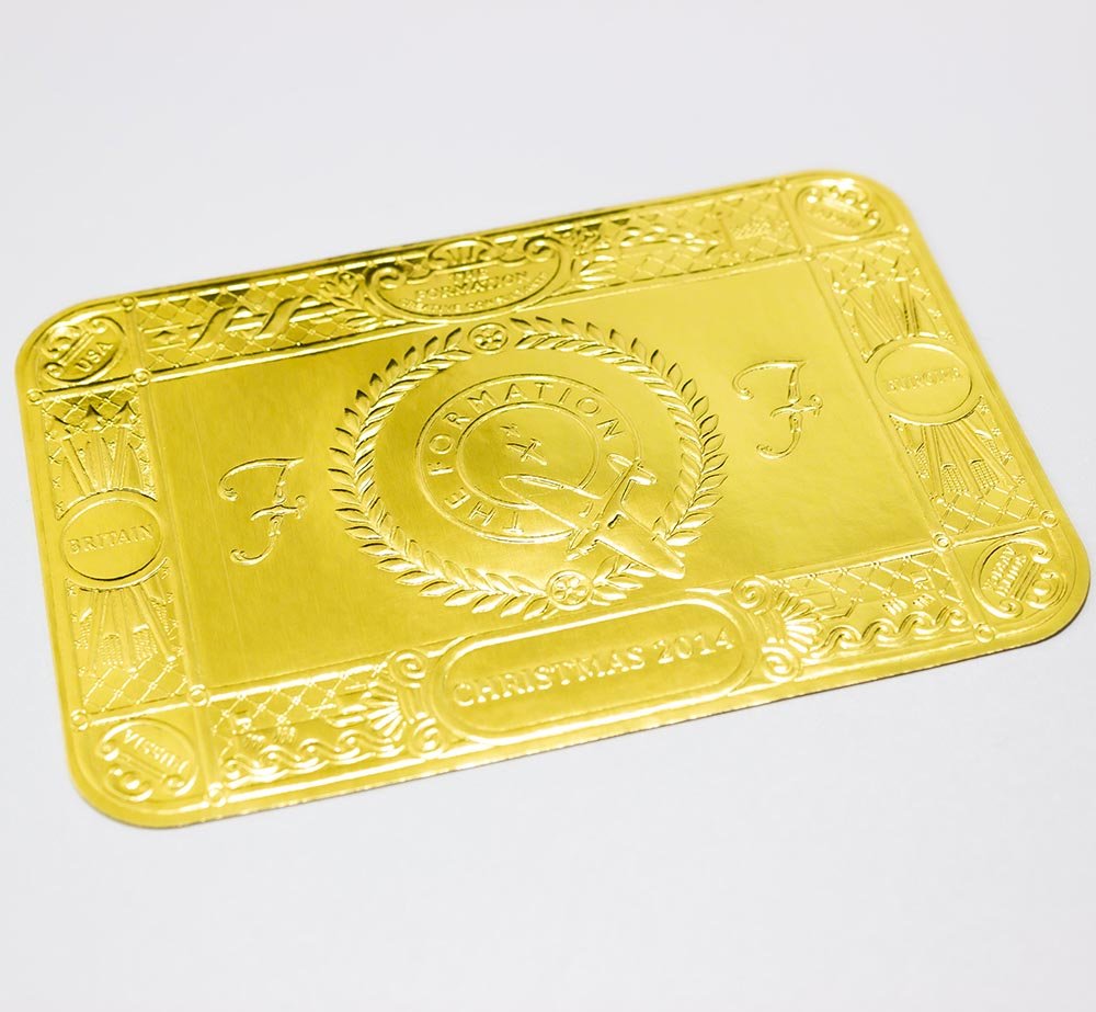 Foiled labels can also be embossed to make a truly lasting impression and to give a raised profile to the label and provide an added aesthetic element to the label giving it that “high value” look. The emboss can either be incorporated within the label design or as just a “blind” embossed effect to produce a dramatic label with that extra touch of class, so if you want to raise the profile of your foiled labels and make them stand out from the crowd, why not consider embossing them.
